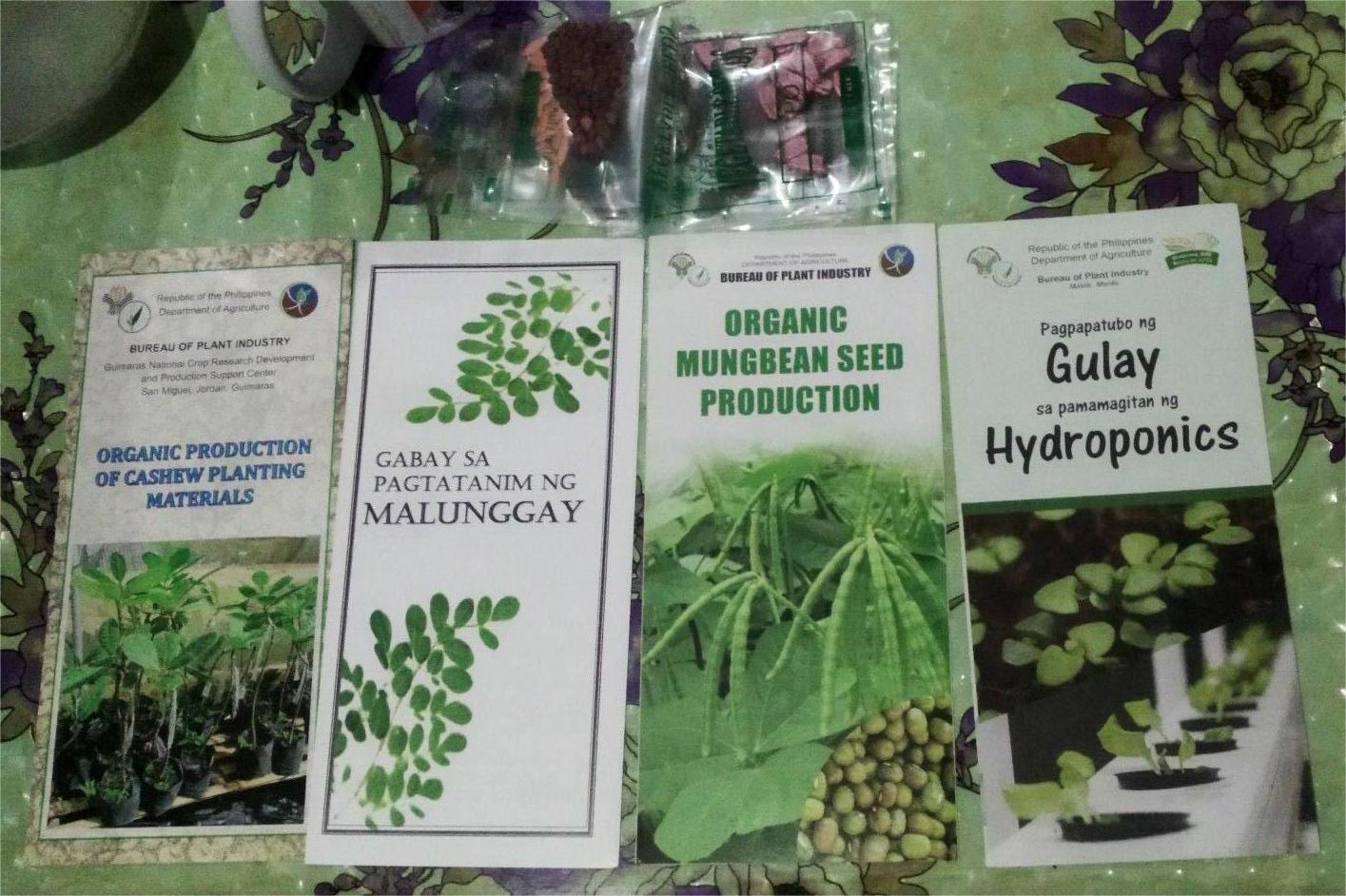 Pagdating ko sa Luneta, maraming booth ang naroon, na pawang mga ahensya ng pamahalaan. Napadaan ako sa booth ng Department of Agriculture, at nakahingi ng apat na primer mula sa Bureau of Plant Industry: Gabay sa Pagtatanim ng Malunggay, Pagpapatubo ng Gulay sa Pamamagitan ng Hydroponics, Organic Production of Cashew Planting Materials, at Organic Mugbean Seed Production. At nabigyan nila ako ng limang balot ng iba't ibang binhing pantanim.